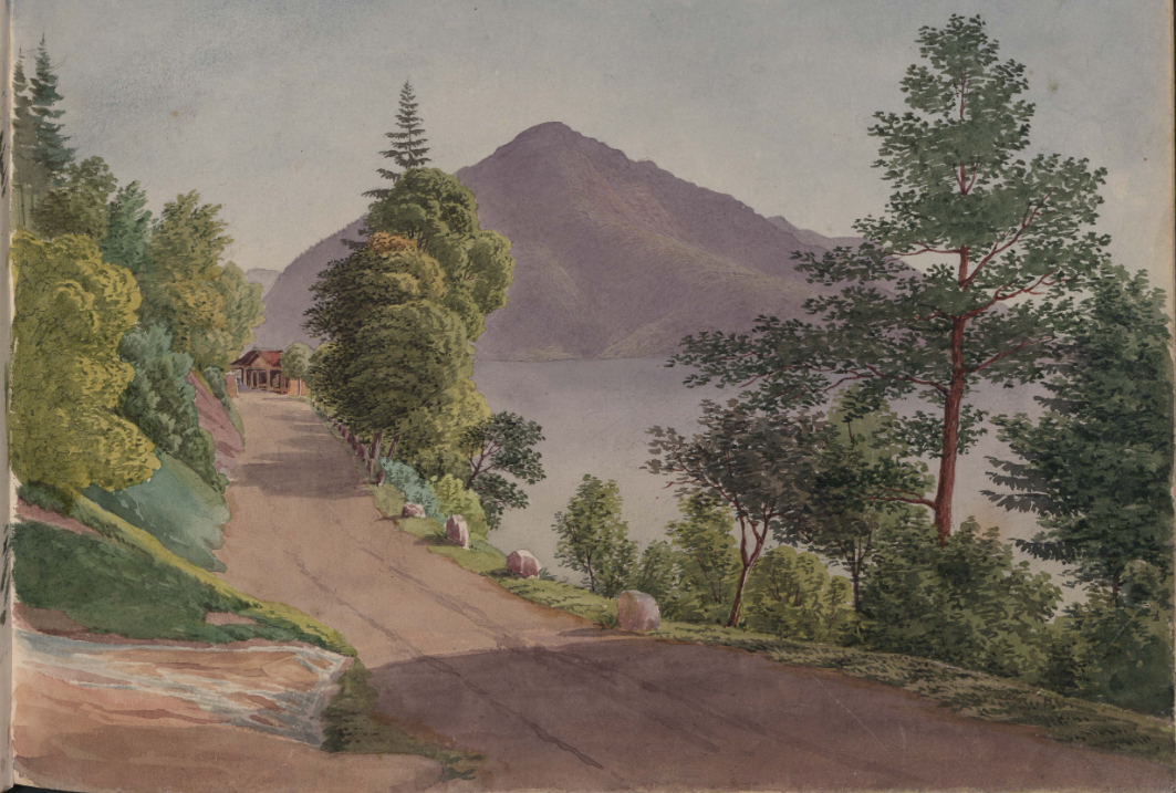 Staatsarchiv Zug, T 25.3, Zeichnung der Kunststrasse von Zug nach Walchwil und Arth, aus dem Zeichnungs- und Skizzenbuch von Thomas Wickart (1798-1876), undatiert (ca. 1835 bis 1840)