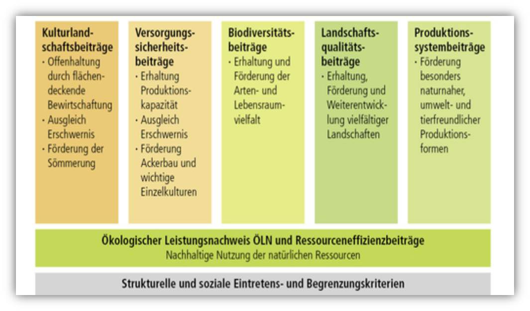 In order to achieve the agricultural policy objectives, there are direct payments, so that services to the public are also compensated. The agricultural policy is based on the following 5 pillars: